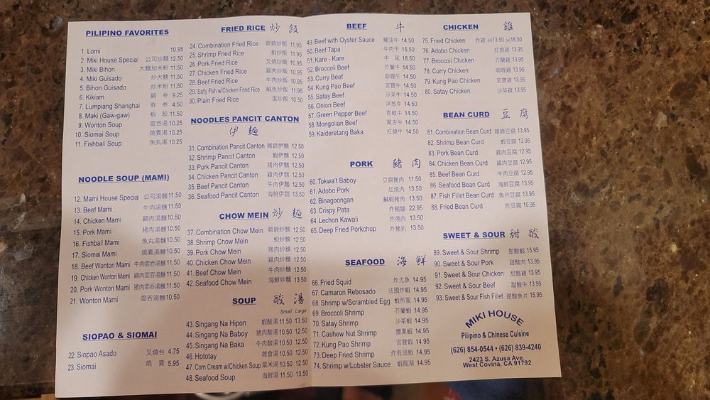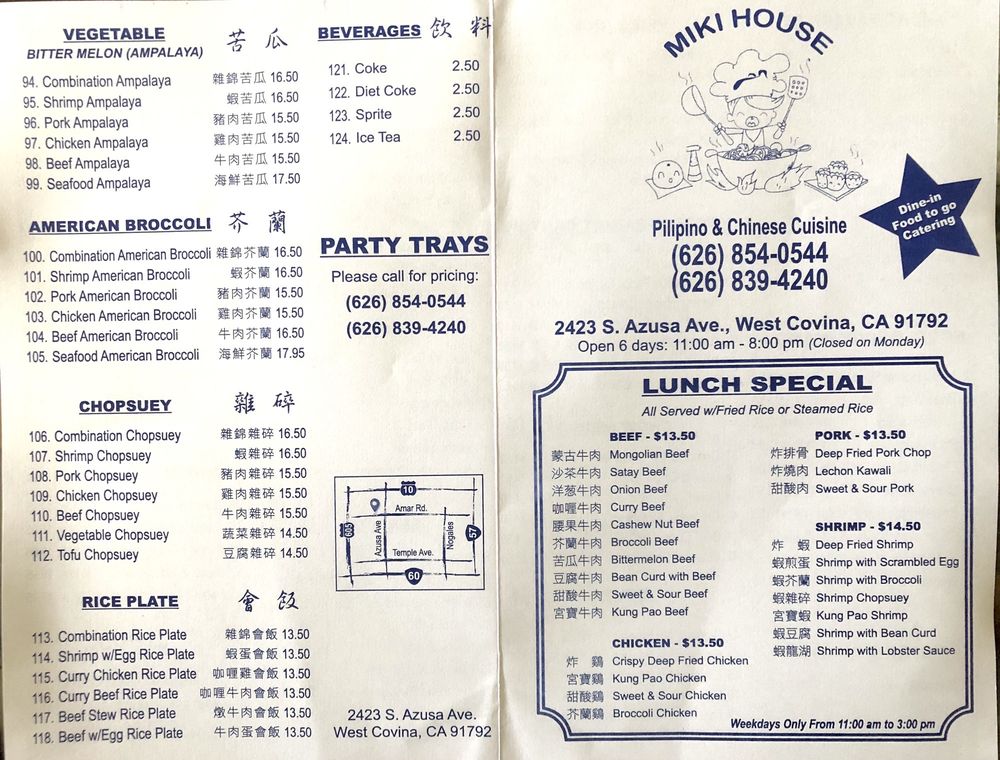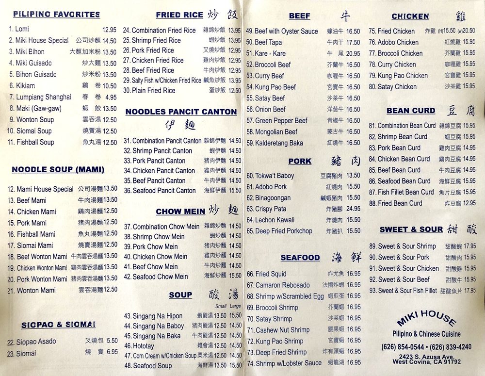 Welcome to Miki House, your go-to destination in West Covina for authentic Filipino cuisine. Located at 2423 S Azusa Ave, this charming eatery captures the essence of traditional flavors with a modern twist. The menu boasts an array of mouthwatering options, including their famous Combination Rice Plate and Miki Bihon, praised by locals as a nostalgic reminder of family celebrations.